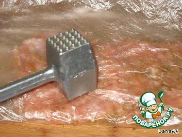 Промаринованное филе слегка отбить через пленку.