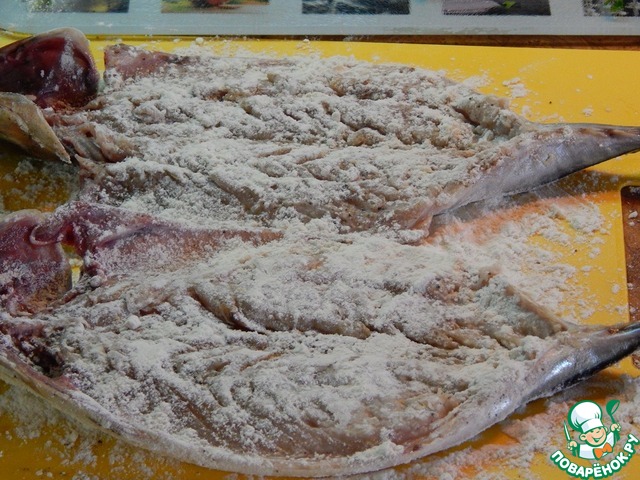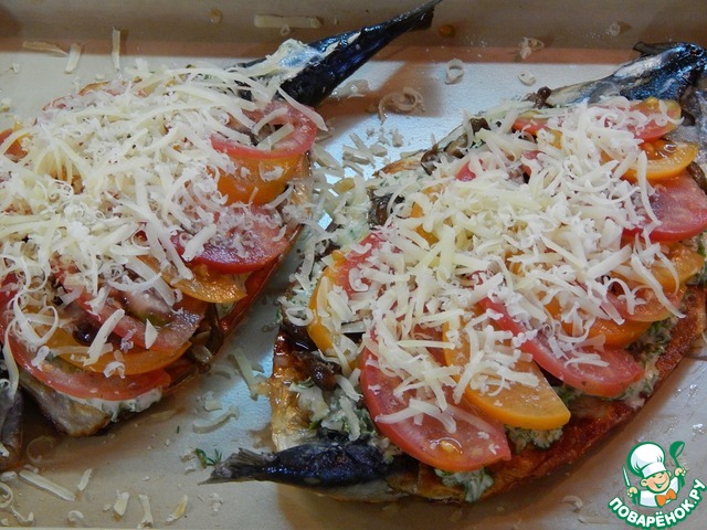 Обжаренную рыбу выложить на противень. На спинку рыбы выложить половину соуса.