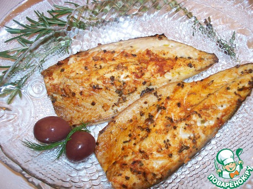 Рыбу достаем из маринада, выкладываем на противень и запекаем 30 минут.