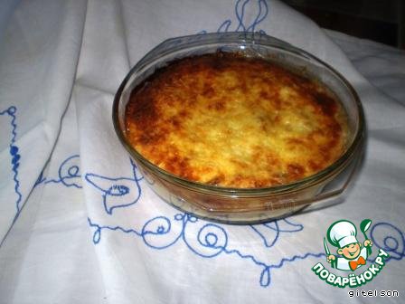 Все предельно просто и быстро. Грибы обжарить, сыр потереть, яйца взбить со сливками, филе рыбы нарезать небольшими кусочками. Послойно выложить в форму для запекания.