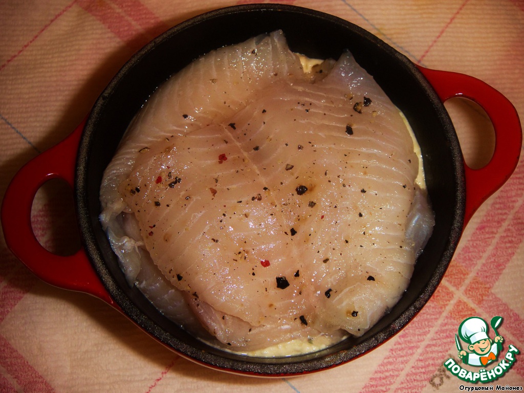 Сверху кладём рыбу, солим, перчим по вкусу.