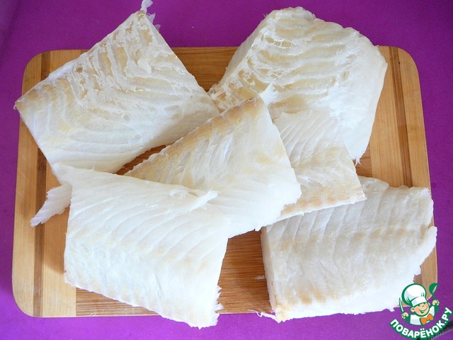 Рыбу (у меня камбала) нарезаем на желаемые кусочки.