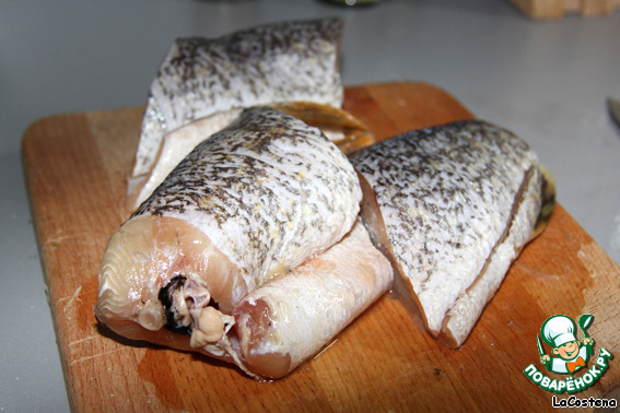 Щуку я разрезаю на части, чтобы легче было очистить от кожи и костей.