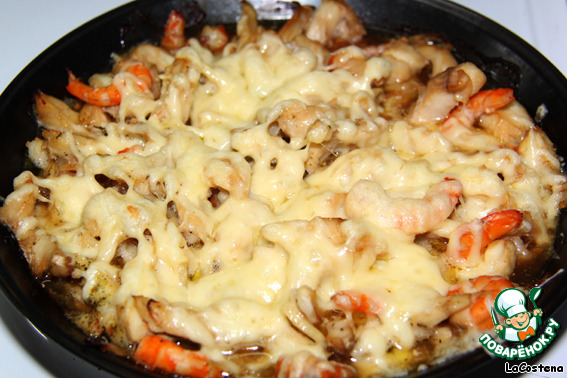 | Нежнейшая запеченная рыба с креветками. Готовить быстро, вкус – фантастический. |