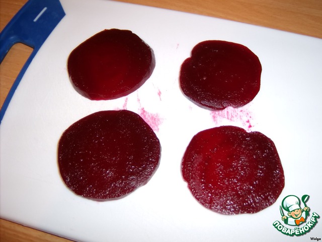 Разрезать свеколку так, чтобы получились 4 кружочка толщиной 0,5 см.