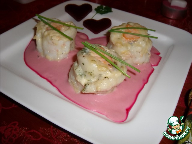 | Нежные рулетики из двух сортов рыбы в сливочном соусе розового цвета - ну чем не ужин для бога любви (а также для сраженных его стрелами... ) На конкурс "Подари мне этот вечер". |
