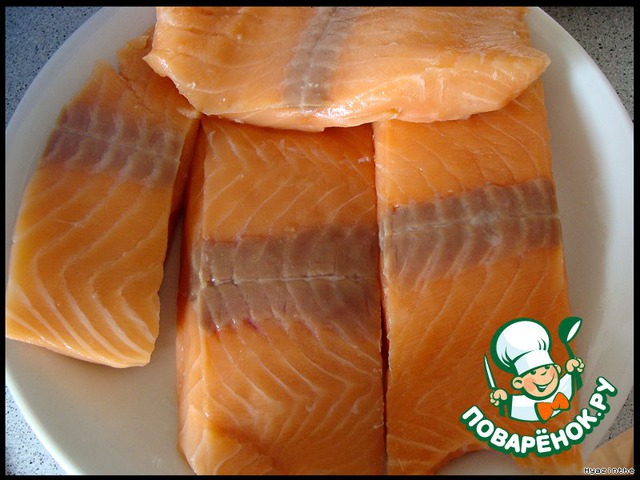 У нас эту рыбу днем с огнем не сыщешь, поэтому я готовила из красной рыбы.