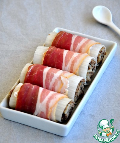| Очень люблю фаршированные овощи. Этот вариант мне понравился своей необычностью - сочная начинка, мягкий порей и хрустящий бекон. Начинка может быть любой - из телятины, баранины, курицы, свинины, можно смешанный фарш, тоже очень вкусно. |