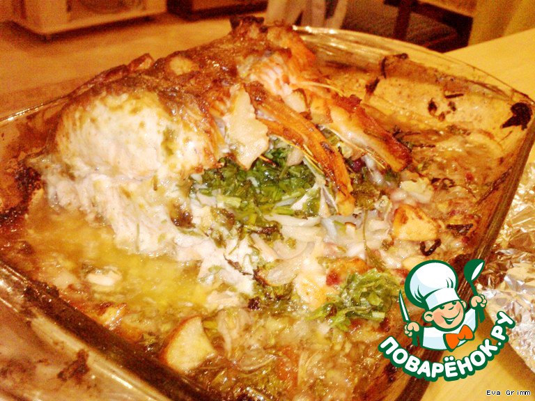 | Люблю, когда готовят мужчины, а мои друзья с Украины очень любят делать это и с таким удовольствием, так вкусно - закачаешься! Раз в год мы собираемся и отдыхаем, ходим в баню, общаемся, в этот раз собрались у нашего друга Вадима, который, наконец, отстроил свои хоромы в 5 -ти км от Москвы. Прошу к нашему столу! Эту рыбку я готовила и на другой день к приходу моих гостей вечером, а если я что-то кушаю 2 дня подряд из праздничных блюд, то поверьте мне, они того стоят! |