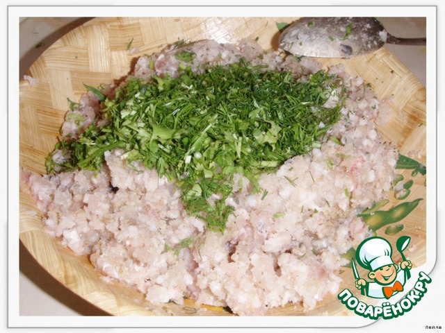 изрядный пучок мелко нарезанной петрушки - и тщательно вымешать. Я добавляла кинзу.