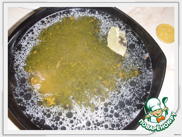 Решила делать на рыбном бульоне,заранее отварила,процедила,остудила.