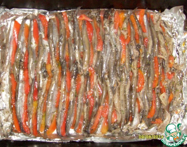 Поставить запекать минут на 5-7 (пока рыбка изменит цвет) в сильно разогретую духовку при 200 градусах (автор рекомендует при 250 - я побоялась).