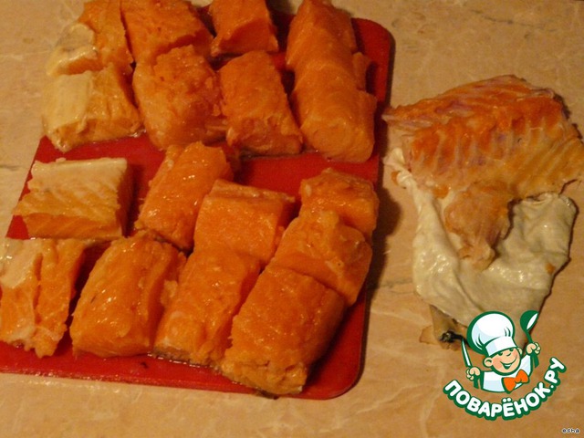 | Вкус семги волшебный, а здесь ее сладость удачно оттенена кислотой белого вина. (Семгу здесь можно заменить на таймень, тунец) |