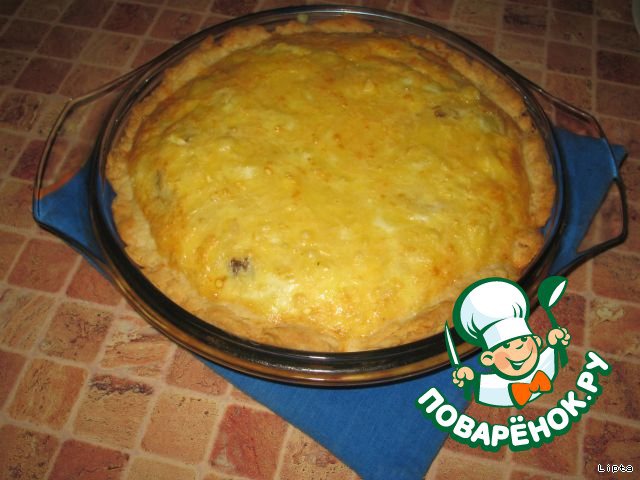 Заливаем яично-сметанной заливкой "тарелочку" и ставим в разогретую духовку. Выпекаем при температуре 200 градусов ~ 40 минут.