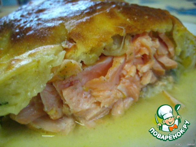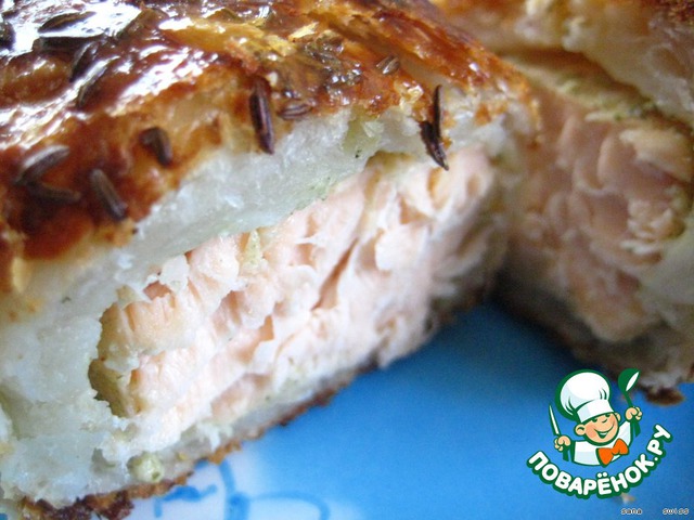 Филе семги с рикоттой, запеченое в тесте
