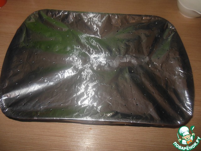 Накрываем фольгой. возьмите побольше, чтобы за края немного заходила, это нам потом понадобится!