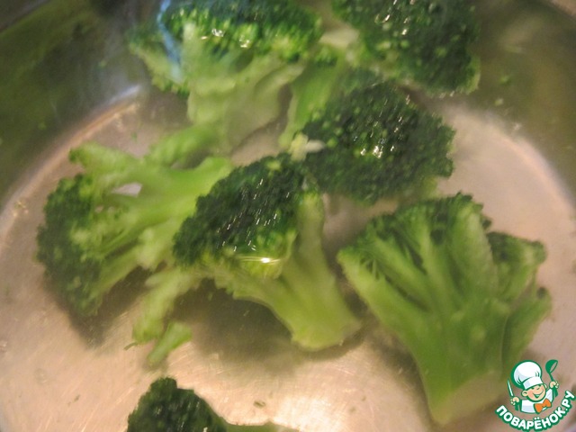 Бланшировать несколько минут в отваре от брокколи. Достать шумовкой.
