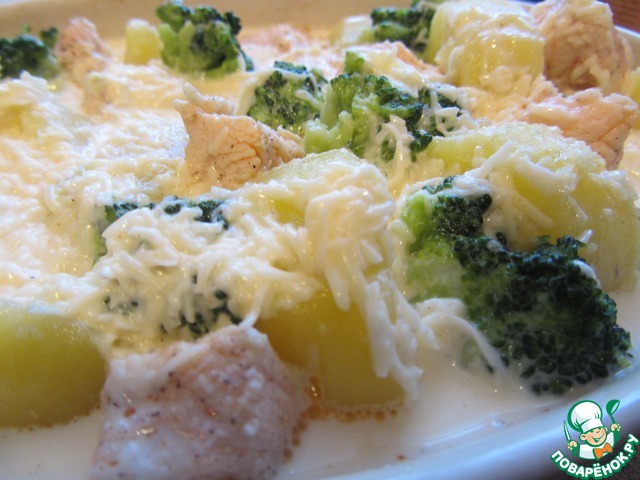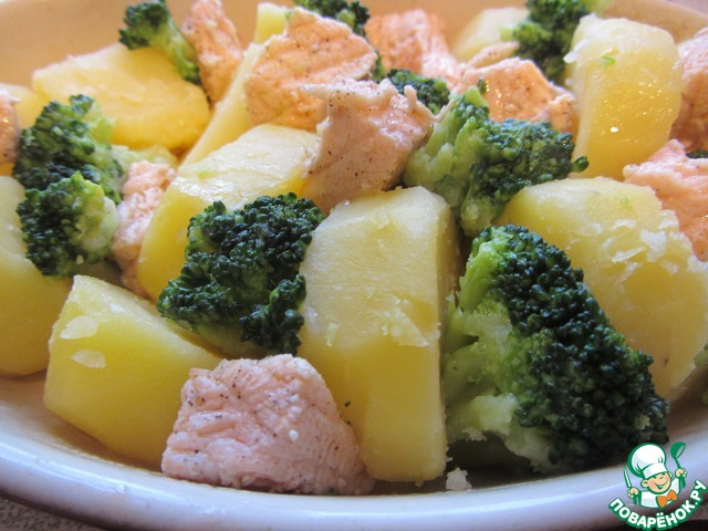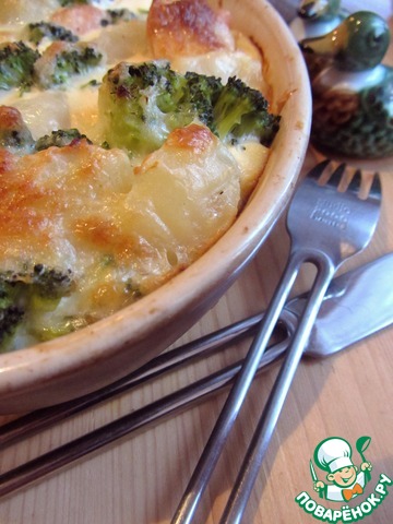 Запеканка из лосося, картофеля и брокколи
