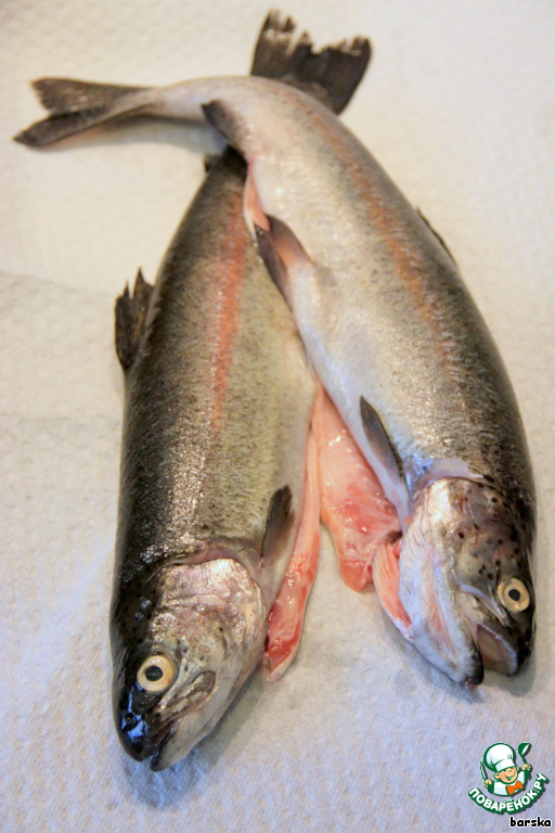 Рыбу (у меня - форель) очистить от жабр и чешуи и промокнуть бумажными полотенцами.