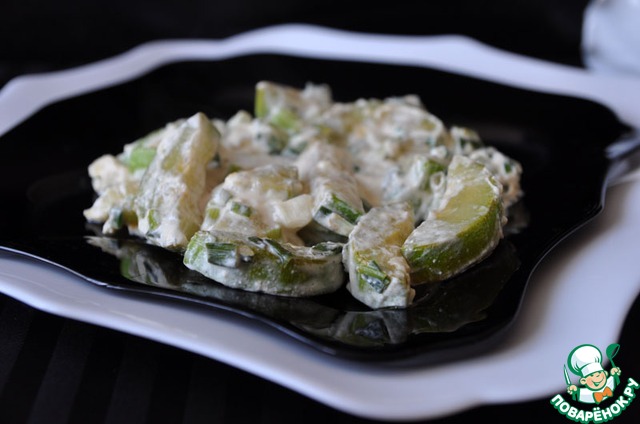 Молодые цуккини нарезаем полосками, зелёный лук колечками.