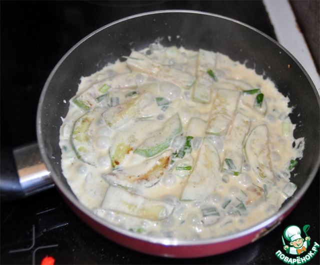 На сковороду наливаем растительное масло, кладём цуккини и обжариваем с обоих сторон до золотистого цвета.