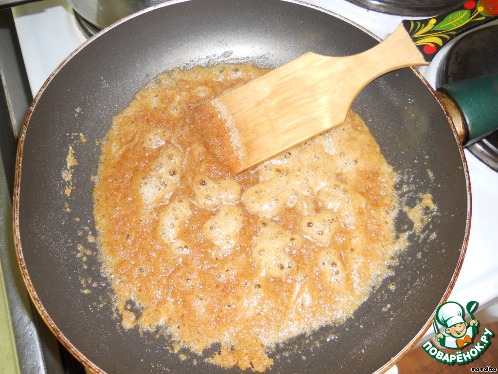 Приготовить соус. Для этого на сухую разогретую сковороду высыпать панировочные сухари и обжарить до золотистого цвета. Когда сухари приобретут красивый оттенок, положить туда сливочное масло, растопить и хорошо помешать.