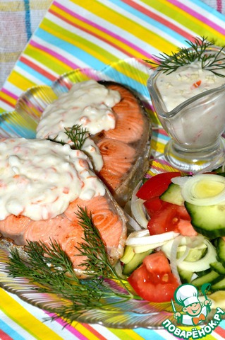 Форель с крабовым соусом и чесноком