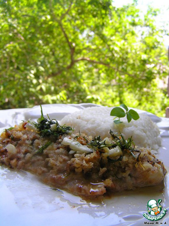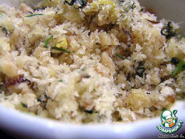Филе посолить по вкусу. Выложить хлебно-ореховую смесь на рыбу, прижать.