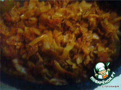 капусту шинкуем, нарезаем морковь, лук, перец и все это кладем в сковороду для пассеровки. когда капуста готова, добавляем перекрученные на мясорубке томаты. я еще перчика красненького, одну штучку, добавляю, но это если не боитесь изжоги.