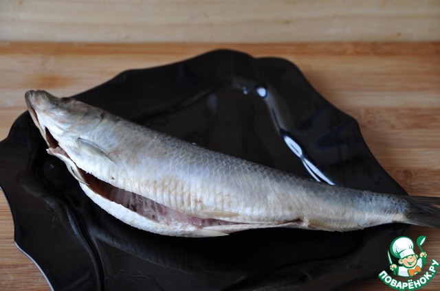 Берём сельдь, моем, чистим, из головы удаляем жабры.
