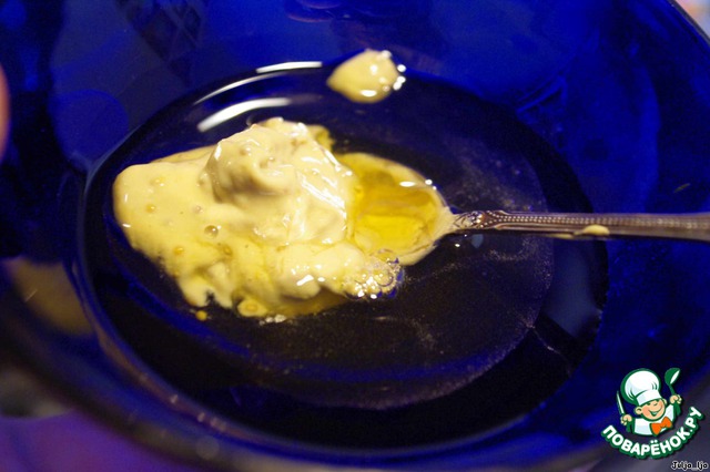 Для соуса хорошо смешиваем все ингредиенты. Оставшуюся горчицу, мёд и масло.