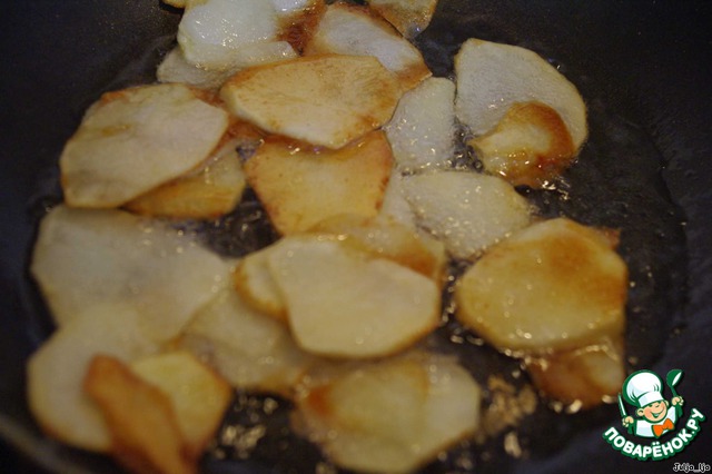 С картофеля сливаем воду, высушиваем его бумажными полотенцами и обжариваем в большом количестве разогретого масла.