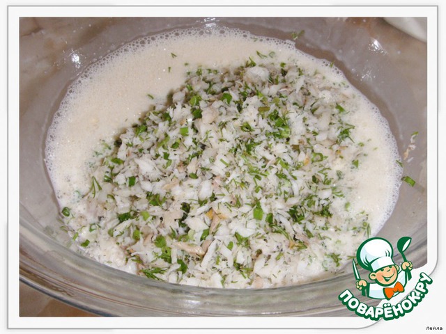 Кладем рыбу,хорошенько размешать