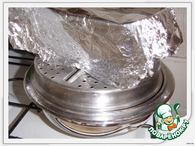 и запечь на водяной бане в духовке,при t=180* в течении 40-45 минут,делала на газе.