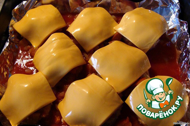 сверху выложить сыр и отправить в духовку на 20-25 минут при 200-210*С