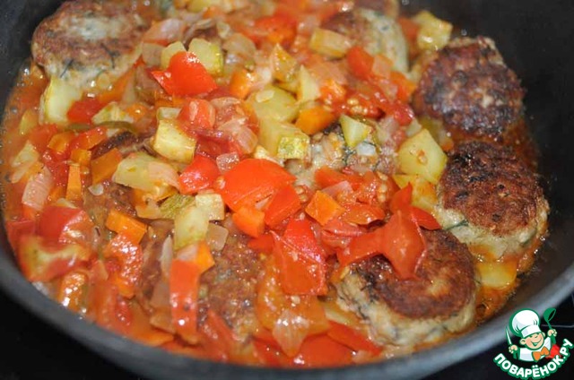 Заливаем польпетте овощным соусом и тушим на медленном огне 15 минут при закрытой крышке.
