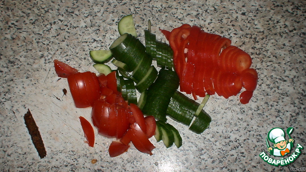 За 5 минут до того, как замаринуется рыба, шинкуем наши остальные овощи.