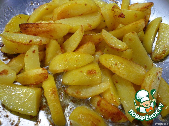 Масло разогреть в сковороде, добавить картофель, обжарить до золотистой корочки в течение 7-8 минут