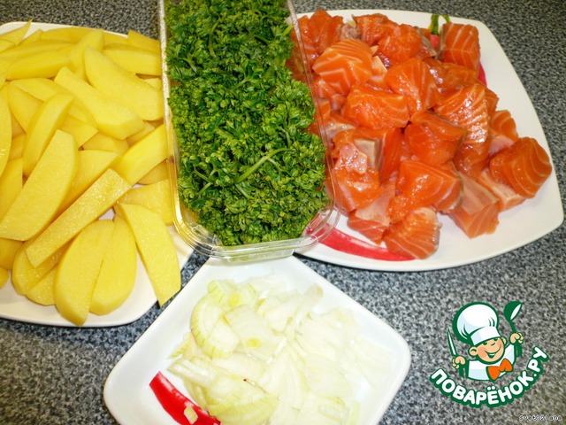 Жареный лосось с картошечкой