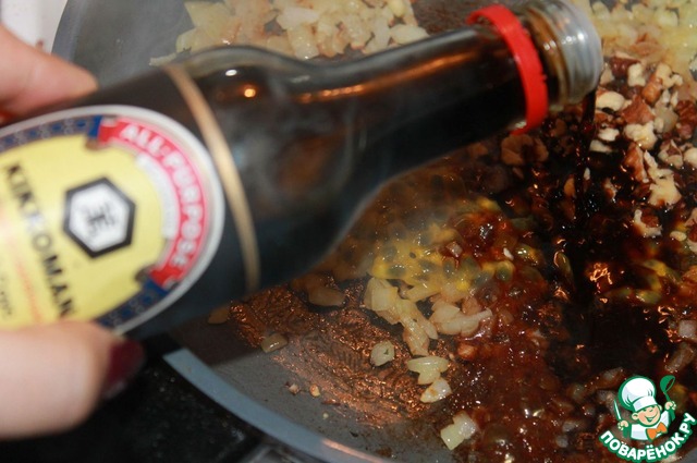 И рубленный грецкий орех. Прошу обратить внимание, что соль я в этом блюде не использую совсем