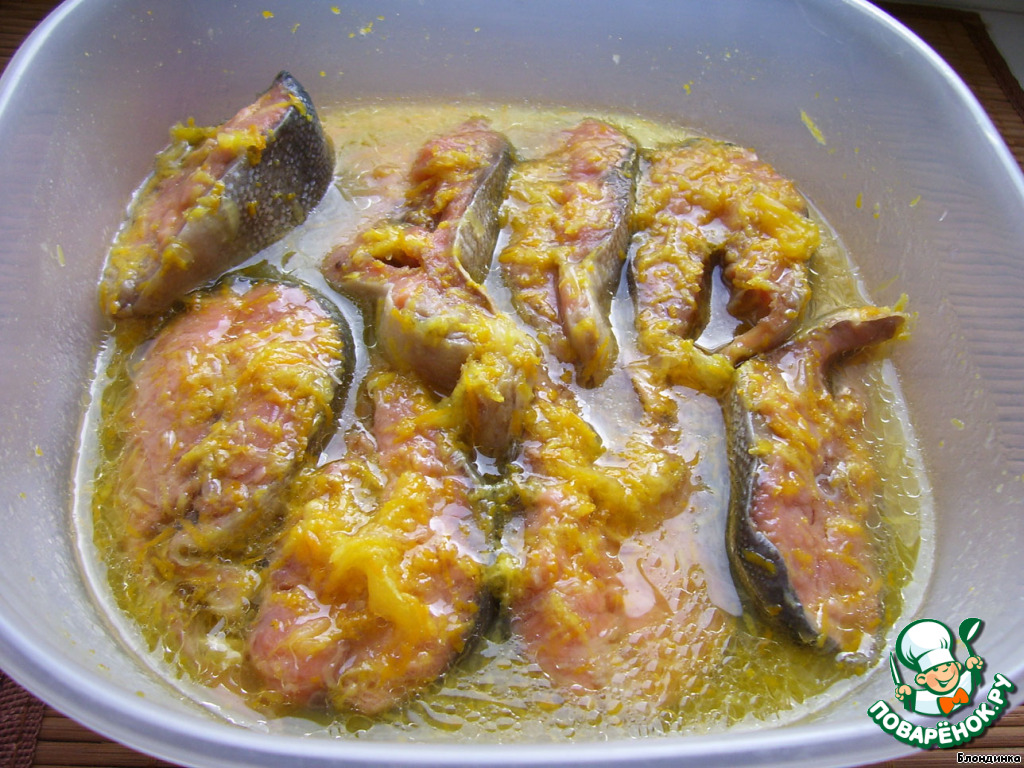 Заливаем маринадом подготовленные куски рыбы и оставляем на 5-6 часов, а лучше на ночь, в холодильнике.