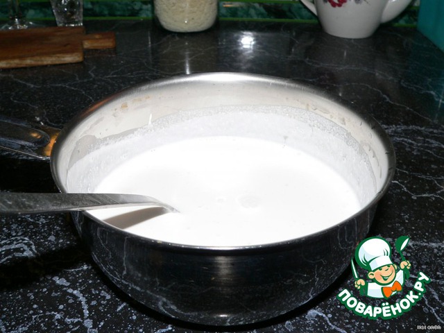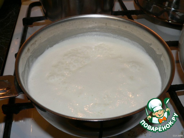 Сливки перелить в небольшую кастрюльку из нержавейки. Если слишком густые, разбавить молоком. Количество я написала приблизительно, так как нам соус так нравится, что мы его используем много.