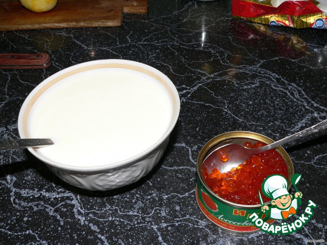 Сливки поставить на огонь, довести до кипения и уваривать на маленьком огне до желаемой густоты, постоянно помешивая. Я уваривала минут 10-15, до густоты жидкой сметаны. Когда густота достигнута - посолить по вкусу. Только не пересолите, а то потом еще икру добавлять...;-)