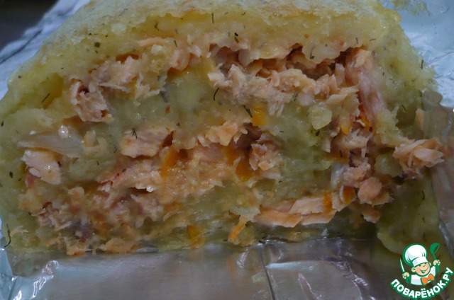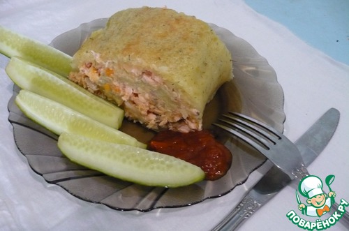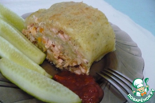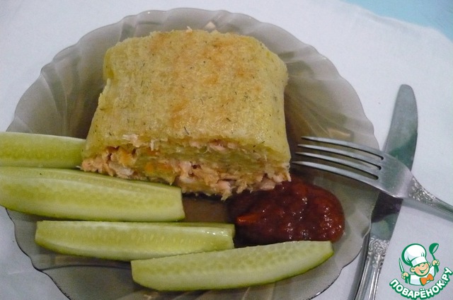 Можно приготовить и как обычную запеканку -слоями. Но в рулете картошка лучше пропитывается соками от рыбы.