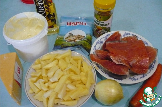 Горбушу филируем, картошку чистим и я режУ, что бы быстрее сварилась.