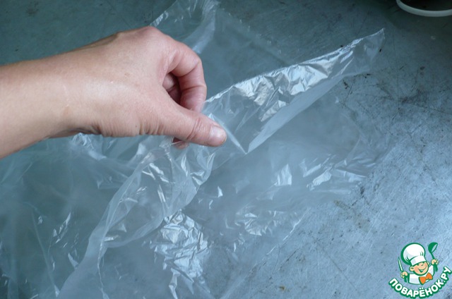 Теперь формируем рулет. Для этого я использую обыкновенный пакет, который разрезаю по швам.
