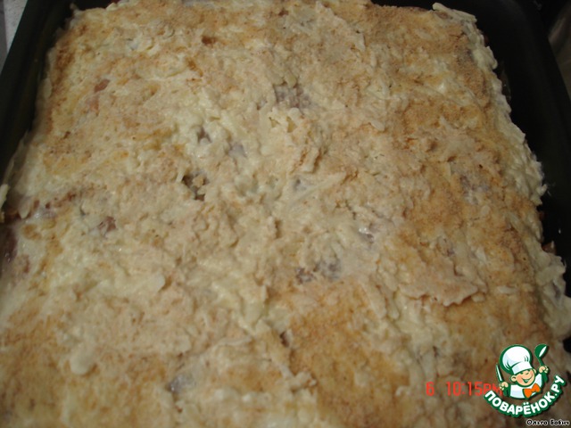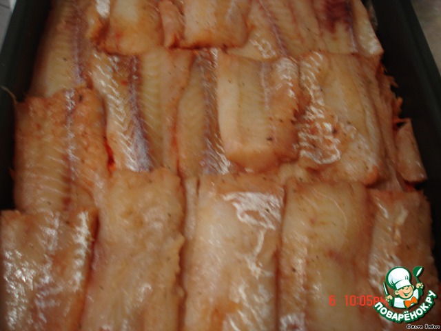 Укдадываем сверху рыбки, присыпать панировочными сухарями и ставим запекаться на 60 минут при 200 гр.