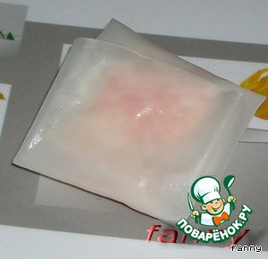 Рыбное филе нарезать порционными кусочками, по числу кусков рыбы - количество листков рисовой бумаги.