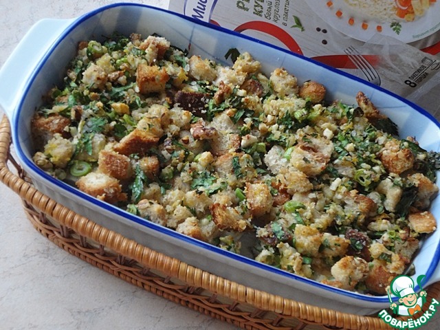 Запекайте в духовке 10-15 минут до золотистого цвета сухариков.