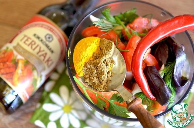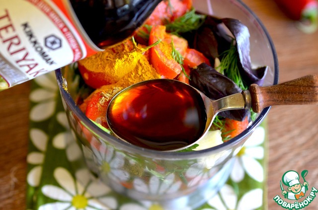 Влейте две большие ложки соуса-маринада Терияки от Киккоман.